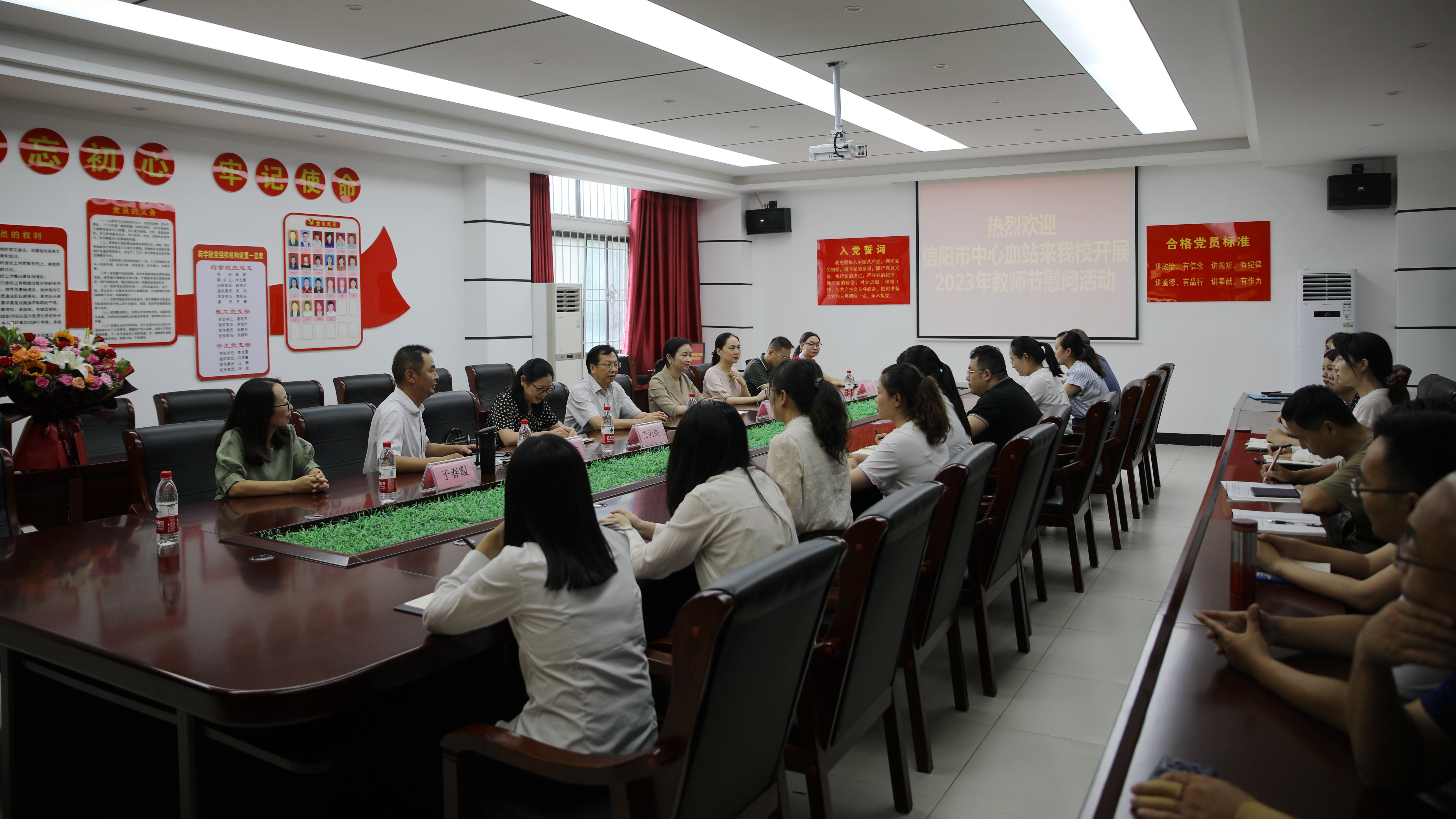 金风送爽,硕果满枝,在第39个教师节来临之际,9月5日,信阳市中心血站站长孙文艳、副站长李丽一行到我校女人十八片毛片60分钟、基础医学部走访慰问一线教师,座谈共话站校合作。学校党委副书记、副校长王操志、人事处处长方丙丽出席座谈会,相关院部负责同志和教师代表参加座谈会。座谈会由女人十八片毛片60分钟院长吴长忠主持。
