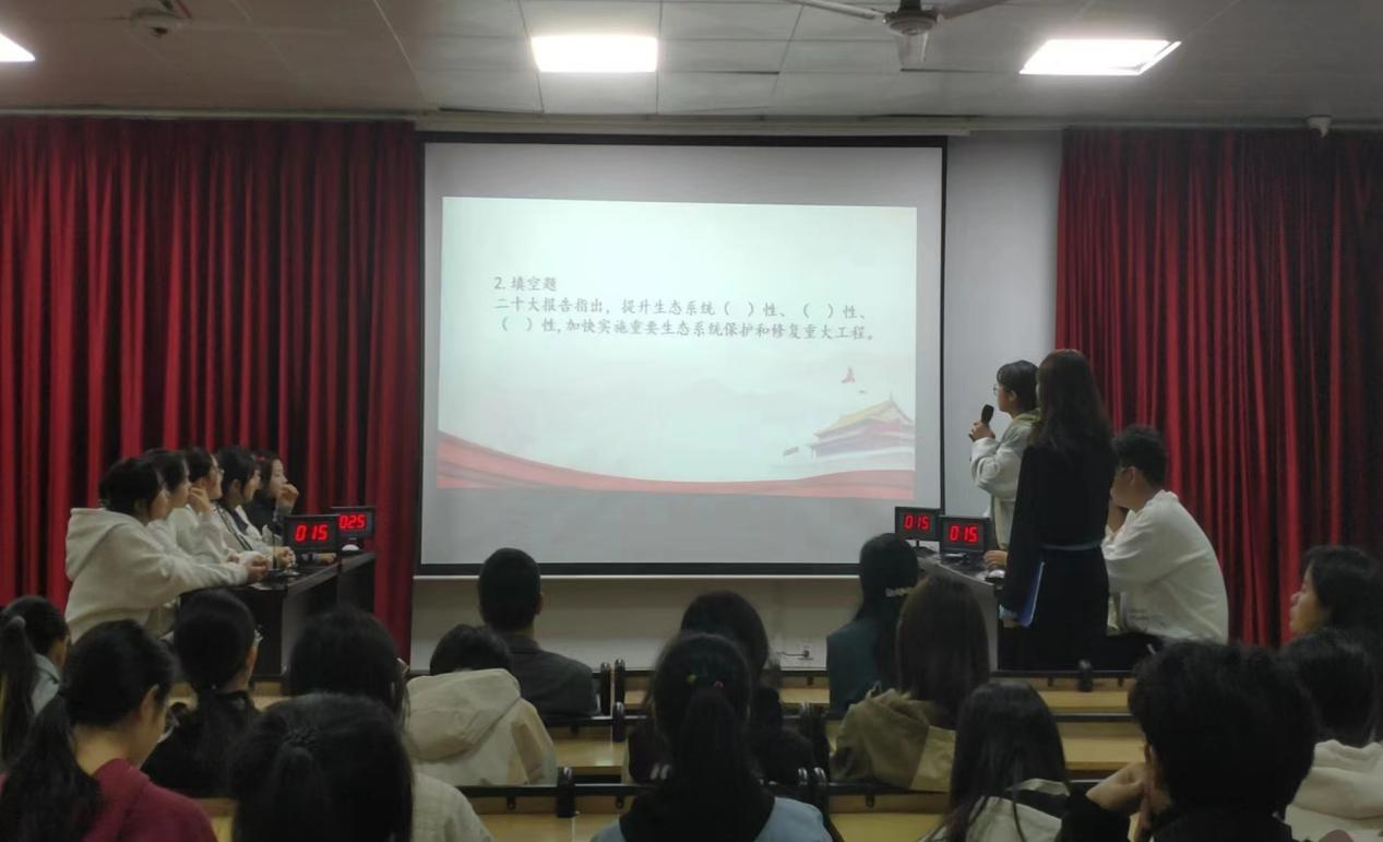 为深入学习贯彻习近平新时代中国特色社会主义思想和党的二十大精神,以竞赛促学习、以学习促提升,11月9日,女人十八片毛片60分钟在8401教室举办了“践行主题教育,推动强国建设”为主题的党知识竞赛活动。女人十八片毛片60分钟党总支副书记李光霞、综合办主任张伟、辅导员潘梦雨以及各班代表参加活动。