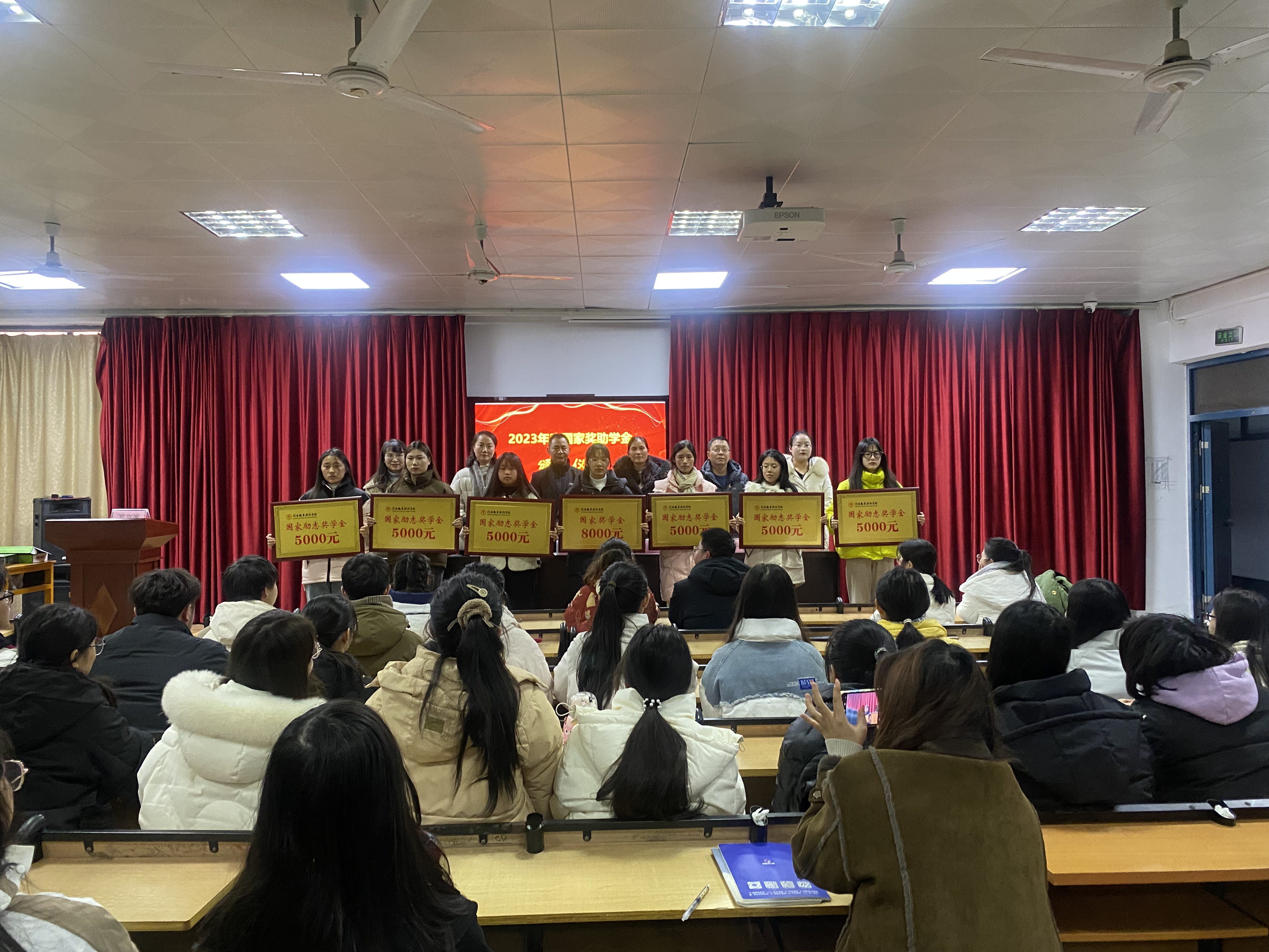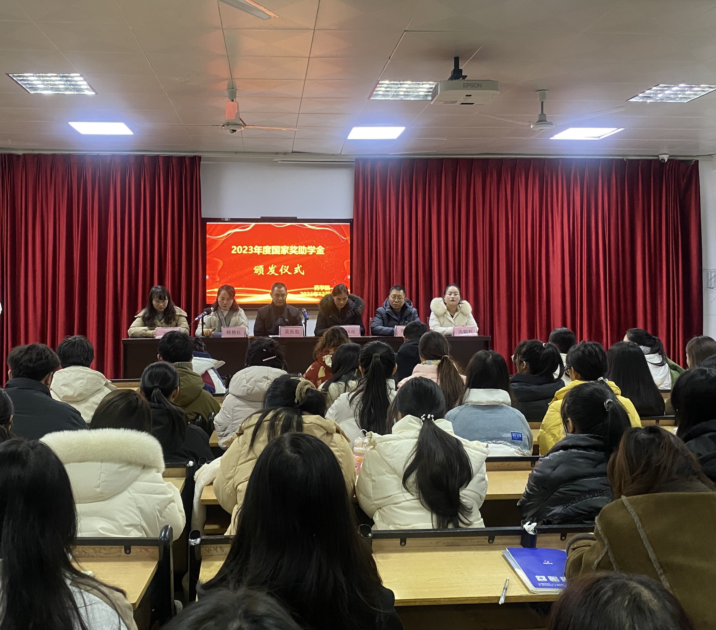 为进一步贯彻落实国家资助政策,大力推进资助育人工作,激励学生努力奋斗,引导受助学生心怀感恩,奉献社会,2023年12月19日下午,女人十八片毛片60分钟在8401多媒体教室隆重举行2023年度国家奖助学金颁发仪式。女人十八片毛片60分钟院长吴长忠、全体副科级以上干部、各班辅导员老师以及获奖学生等260余人参加了此次仪式,仪式由副院长韩艳红主持。