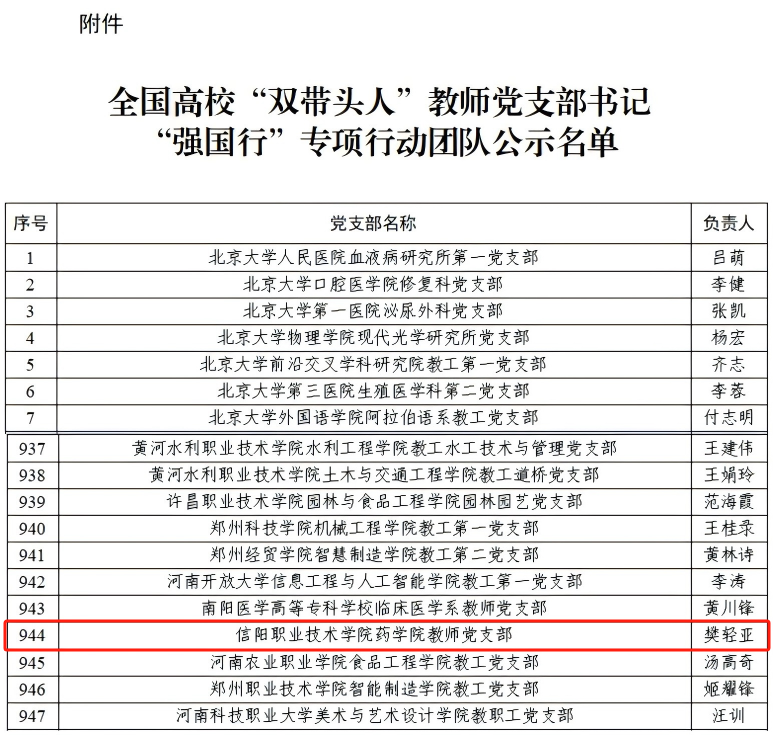 我院樊轻亚教授“双带头人”书记工作室入选全国高校“双带头人”教师党支部书记“强国行”专项行动团队公示名单