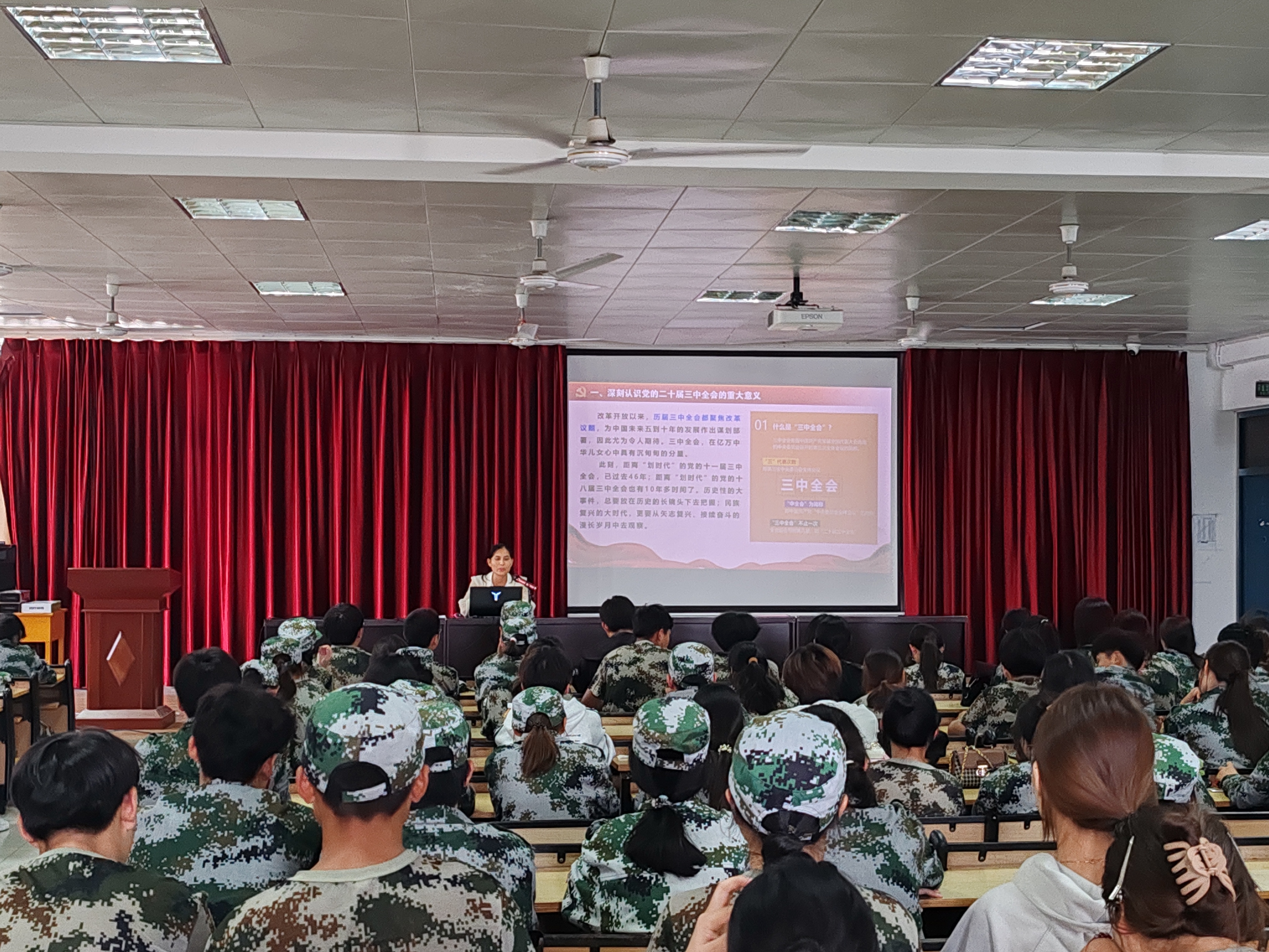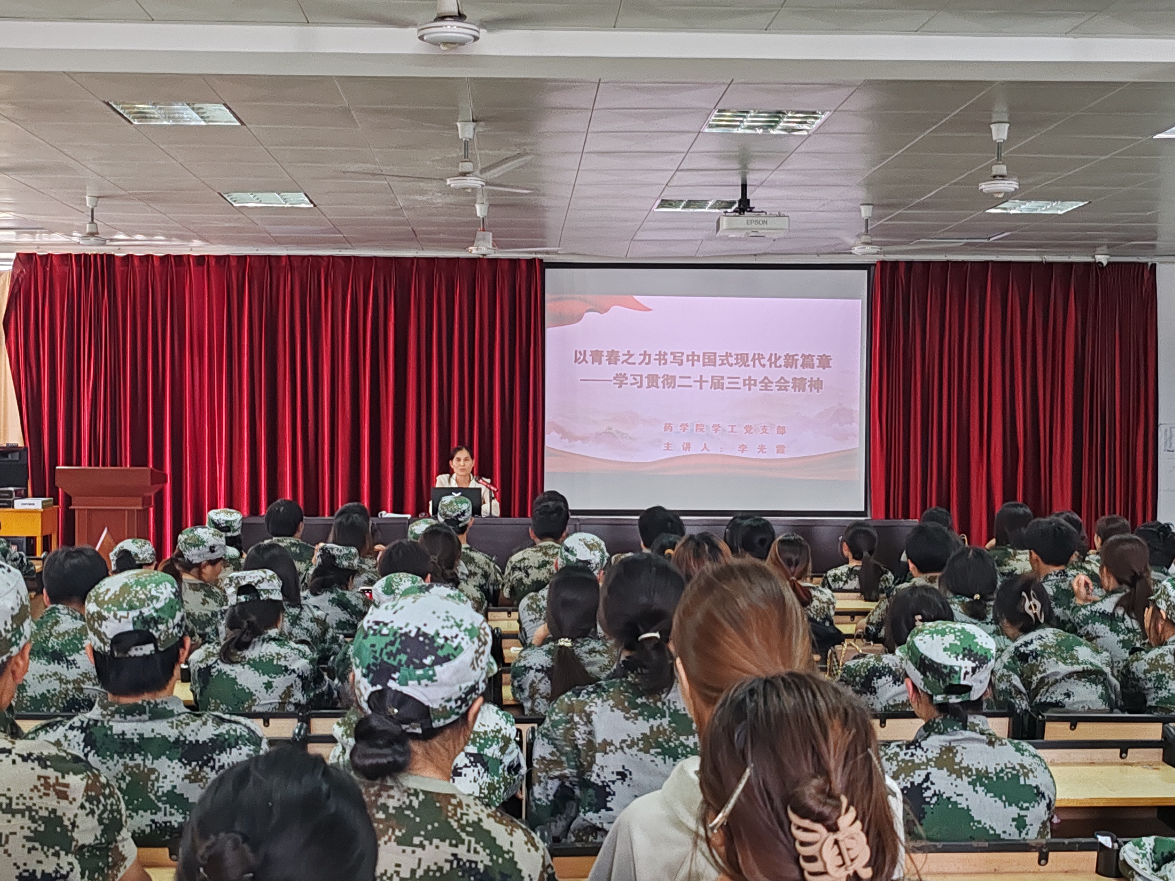 为全面学习贯彻党的二十届三中全会精神,推动全会精神在我院青年学生心中生根,增进广大新生对中国共产党的了解和认识,引导青年学生积极向党组织靠拢。9月24日,学院党总支副书记李光霞为2024级新生讲授“以青春之力书写中国式现代化新篇章”专题党课。2024级全体新生参加。