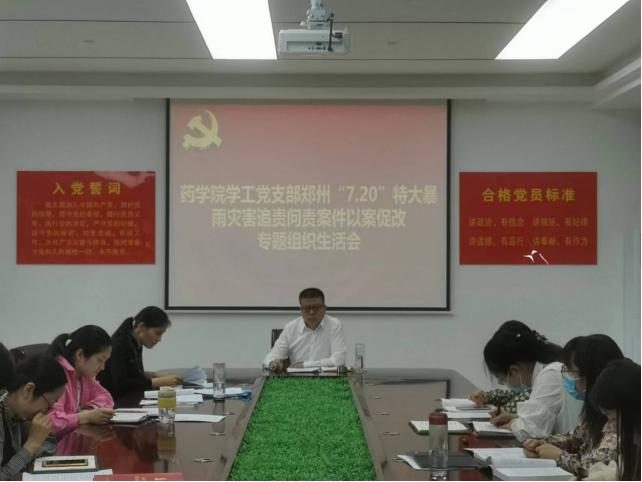 5月3日下午,女人十八片毛片60分钟学工党支部在8105会议室召开郑州“7.20”特大暴雨灾害追责问责案件以案促改专题组织生活会,女人十八片毛片60分钟党总支书记陈超和学工党支部全体党员参加会议,会议由女人十八片毛片60分钟党总支书记副书记、学工党支部书记李光霞主持。