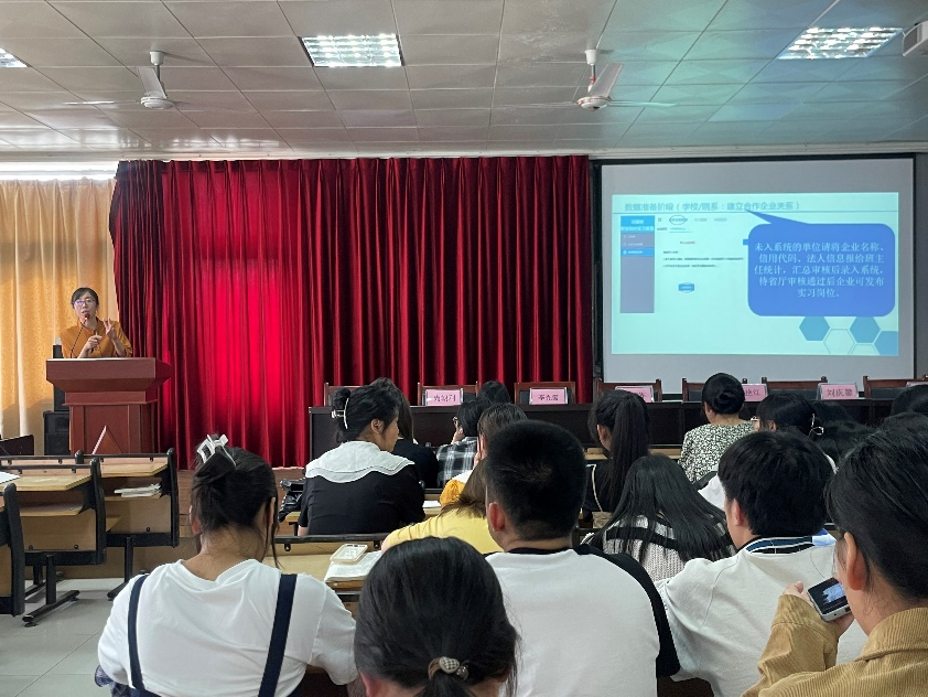 会议最后,实习专干游国叶老师就河南省职业院校实习备案系统操作指南进行了全面的讲解,并对现场同学提出的问题进行答疑解惑,通过交流,指导老师和即将实习的学生明晰了接下来的任务及流程。