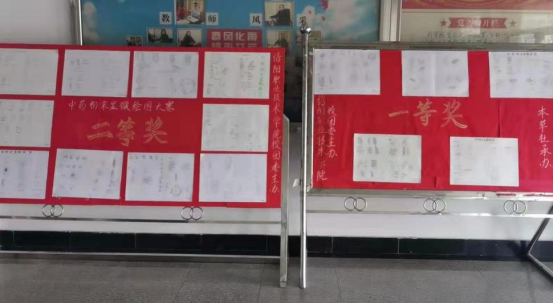 本次比赛依据《中药传统技能赛项规程(高职组)》要求,参赛选手从35种粉末中抽取4-5种粉末根据中药材粉末显微鉴别主要特征在4k纸上绘图。作品要求符合绘图比赛主题,构图正确、完整、美观,且图标和图注清晰明确。经评委老师对作品反复讨论研究,最终评出一等奖5幅,二等奖10幅,三等奖15幅。