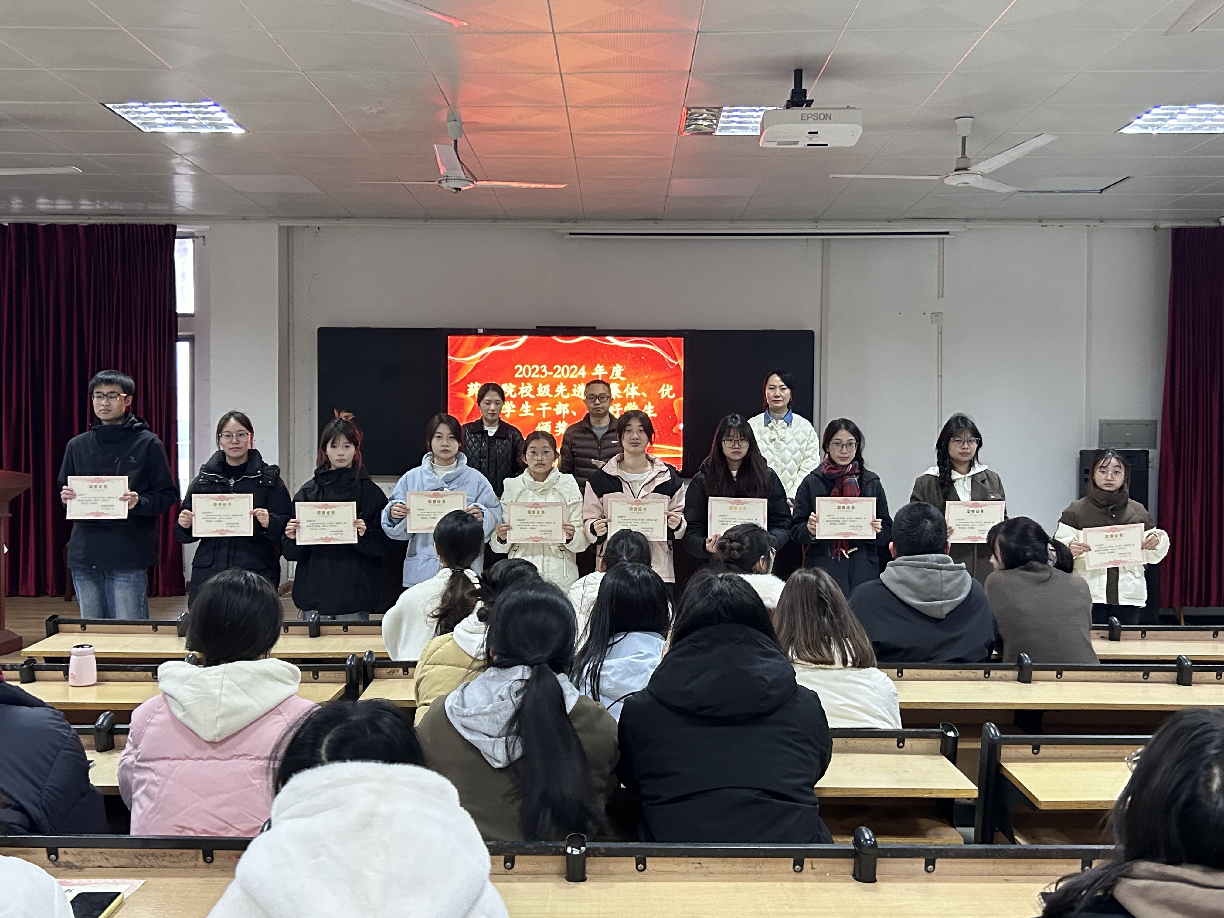 为表彰先进,树立典型,进一步激励女人十八片毛片60分钟学生们奋发向上、积极进取,12月3日下午,女人十八片毛片60分钟2023-2024年度校级先进班集体、优秀学生干部、三好学生颁奖典礼在8401教室举行。党总支书记陈才出席会议,全体学工干部、获奖学生代表和部分班级学生代表参加颁奖典礼。